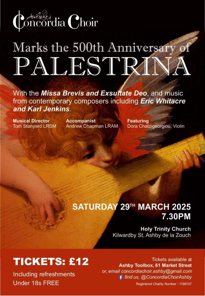 Tickets to all our concerts can be purchased on the door; in advance by emailing concordiachoir.ashby@gmail.com, or by visiting Ashby Toolbox, 61 Market Street, LE65 1AH